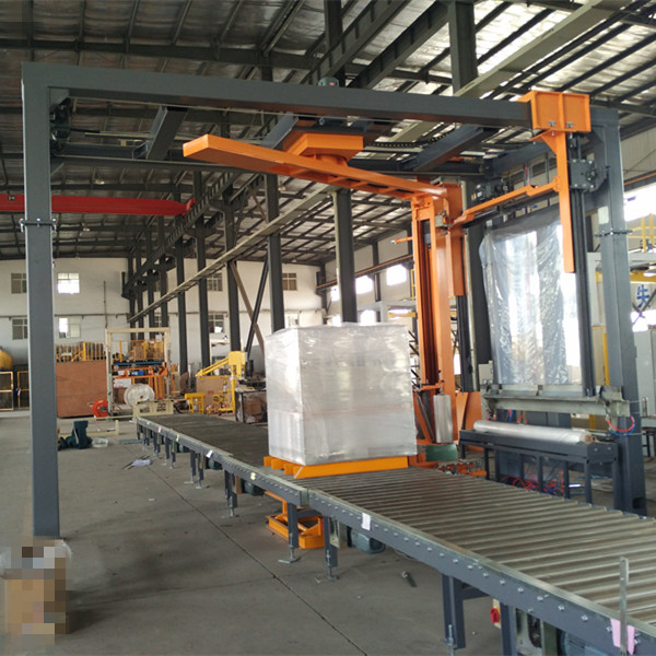 La vitesse d’entraînement du bras rotatif, du convoyeur à rouleaux, du levage du chariot de film est réglable individuellement, la vitesse de livraison du film est également réglable, alarme équipée pour la rupture du film.