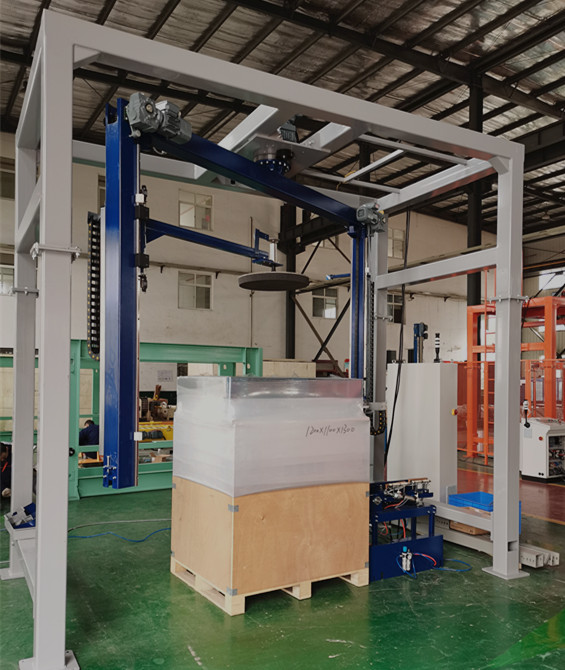 La presse supérieure motorisée descend du haut pour tenir la palette pendant l’emballage afin que la palette ne soit pas tordue. Cette machine fonctionne en toute sécurité. L’emballage est étanche à la poussière, à l’humidité, à moindre coût d’emballage, améliore l’efficacité de l’emballage et réduit les pertes de produits pendant le transport.