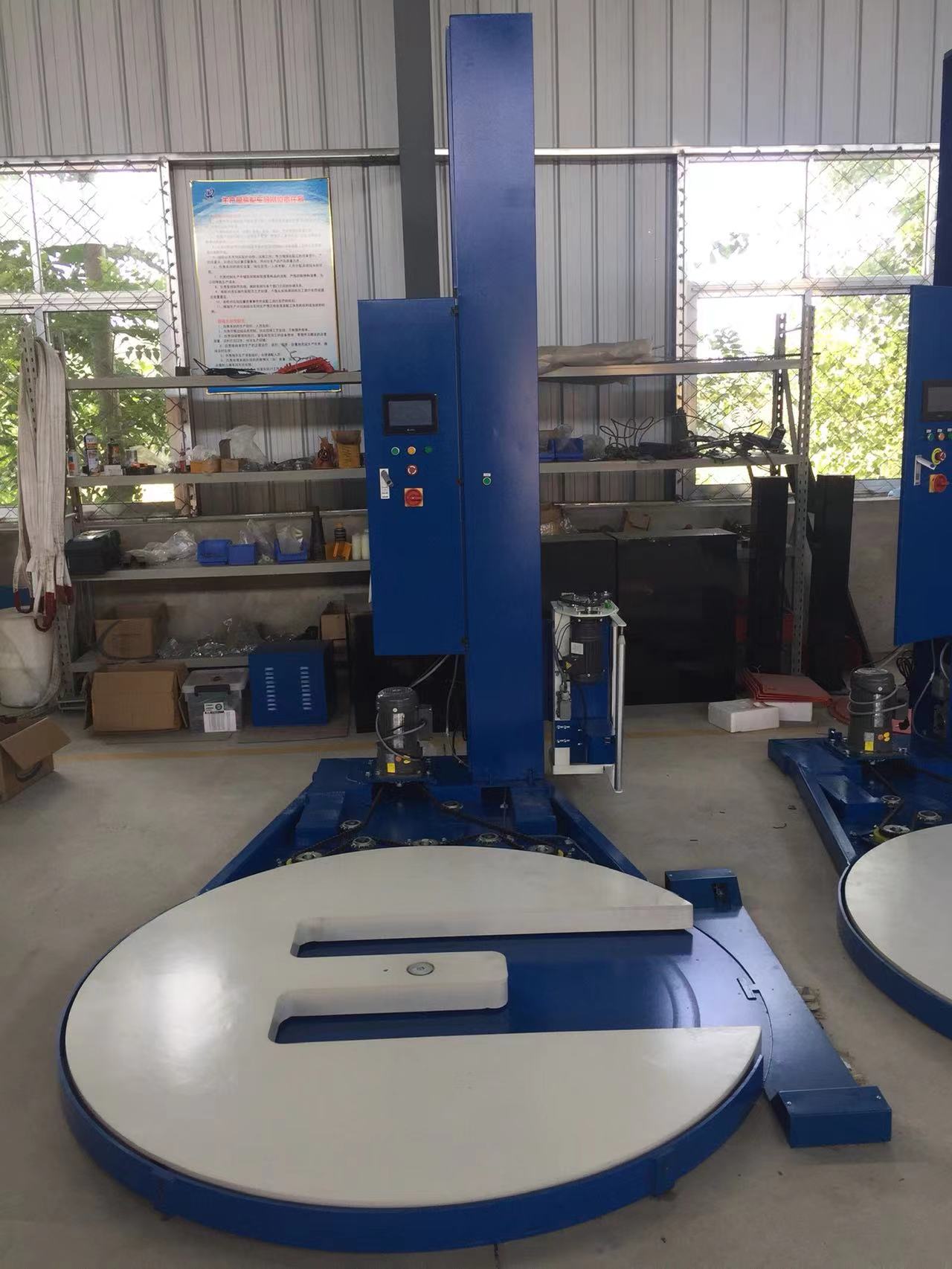 L’emballage de palette de table tournante en fer à cheval a une coupe en fer à cheval sur une platine tournante. Cette conception rend l’entrée et la sortie de palettes beaucoup plus faciles avec le chariot élévateur manuel.