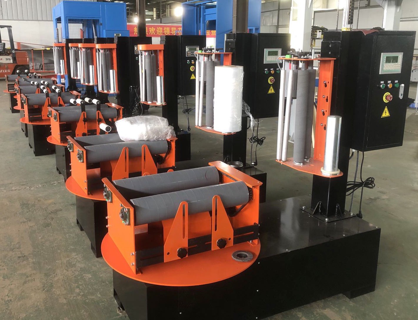 Cette machine prend peu de place. Définissez simplement les paramètres sur l'IHM, appuyez sur le bouton de démarrage, puis le plateau tournant tourne avec le rouleau, tandis que le film étirable s'enroule autour du rouleau.