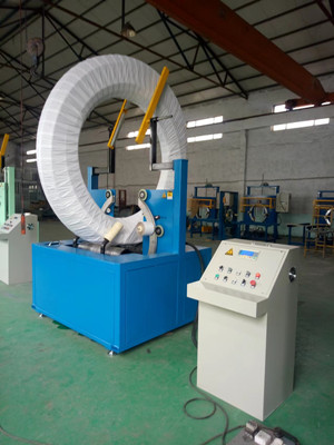Enrubanneuse pour rouleau de tuyau d'eau, rouleau de câble et rouleau de tuyau de gaz, etc. de grand diamètre.